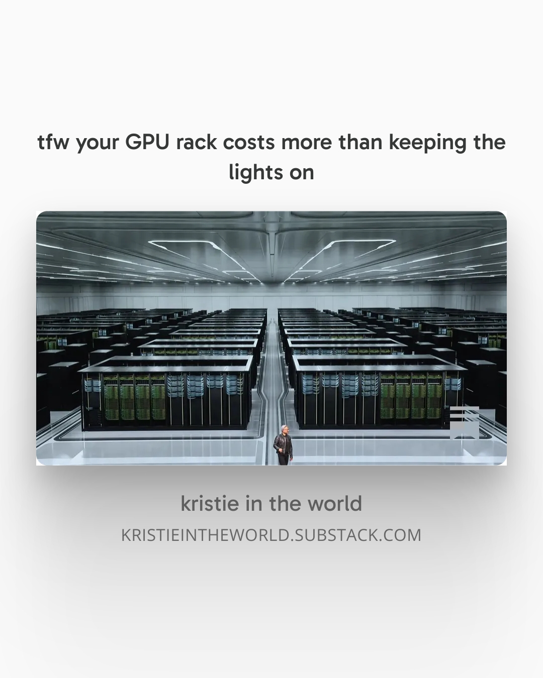 … this was an excerpt; read the rest of my essay at https://kristieintheworld.substack.com/p/tfw-your-gpu-rack-costs-more-than